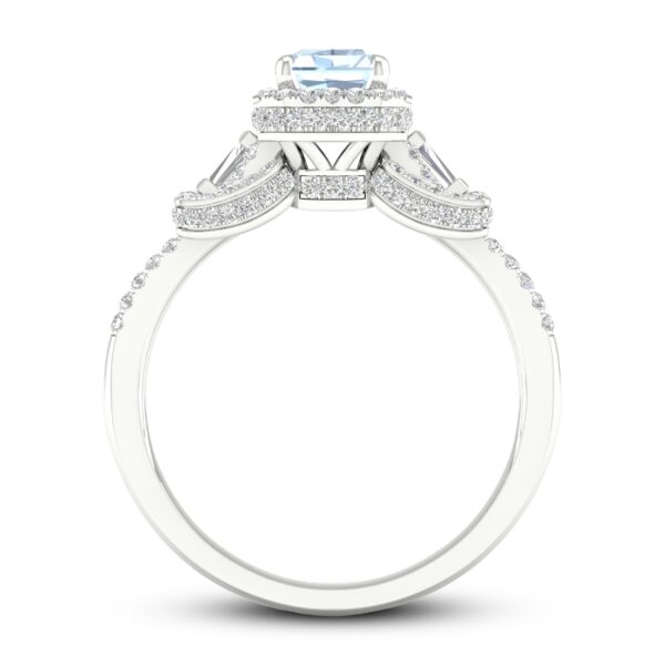 Aquamarine & Diamond Engagement Ring 1/2 ct tw Emerald/Round/Baguette-cut 10K White Gold