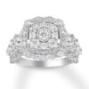 A chorus of round diamonds and milgrain detailing come together to form this intricate engagement ring, styled in 14K white gold. The ring dazzles with a remarkable total diamond weight of 2 carats.