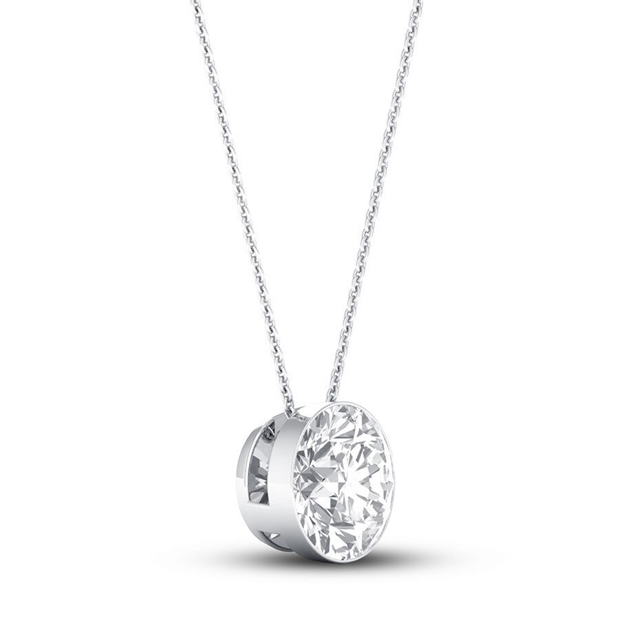 A simple setting allows for a clear view of a brilliant 1-carat round diamond in this unforgettable necklace for her. Styled in 14K white gold to further complement the dazzling diamond, the necklace includes a 16-inch cable chain that fastens with a lobster clasp.