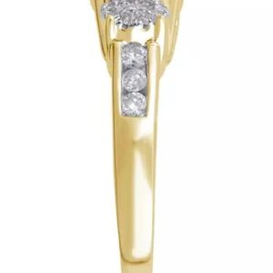 Make her wishes come true with this romantic round-shape three stone halo diamond engagement ring (3/4 ct. t.w.) beautifully designed in 14k gold, white gold or rose gold.