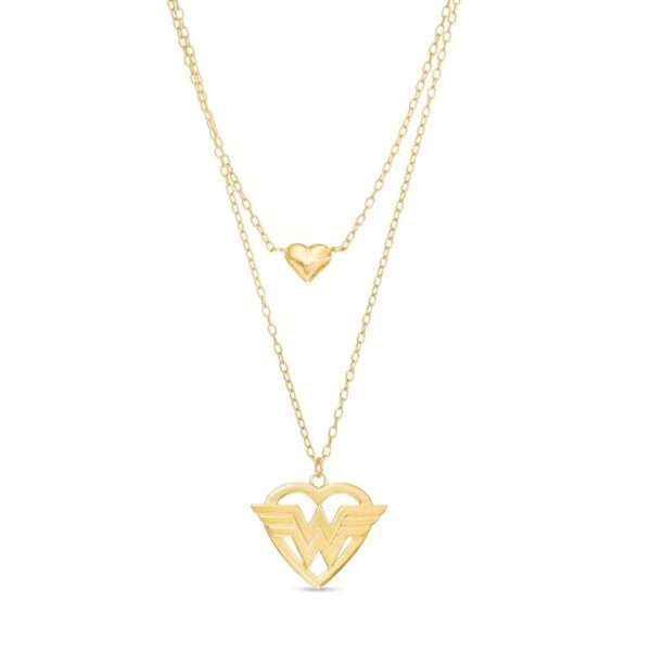 HeartwithLogoandMiniPuffHeartDoubleStrandNecklacein10KGold-21.5″